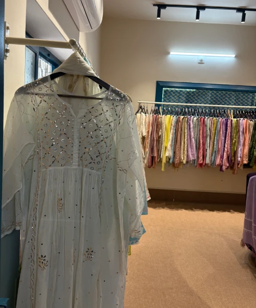 Designed to reflect our philosophy of slow fashion and soulful creation, the boutique invites you to pause, feel the fabrics, and connect with the stories behind every piece.Each garment at the MiMahi Boutique is carefully curated, not crowded.From handcrafted Chikankari to heritage-inspired silhouettes, every piece is displayed with intention — allowing its craft, detail, and soul to speak for itself.