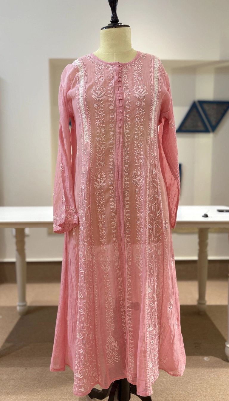 Handcrafted Chikankari on rich crimson mul chanderi—each thread telling a story of artistry, patience, and timeless elegance.