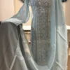 Ethereal and feminine, this beige georgette suit set is adorned with handcrafted Chikankari embroidery featuring delicate blush pink florals. Intricate Tepchi and signature shadow work create a soft, dimensional effect across the flowing silhouette, complemented by a sheer dupatta with embroidered butis and border detailing. A timeless expression of romantic luxury for refined festive occasions.