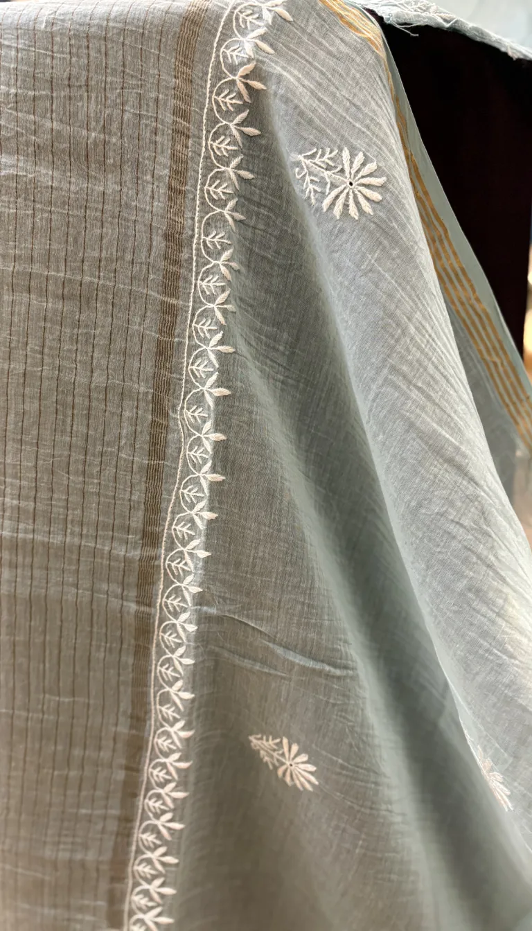 Powder Blue Mal Chanderi Handcrafted Chikankari Suit Set