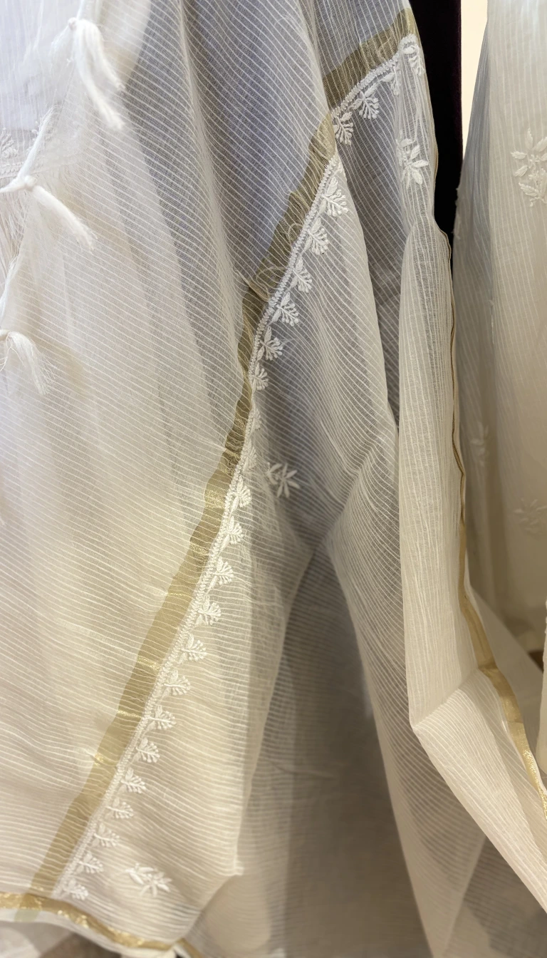 Work: Handwork Chikankari with subtle Golden Zari detailing