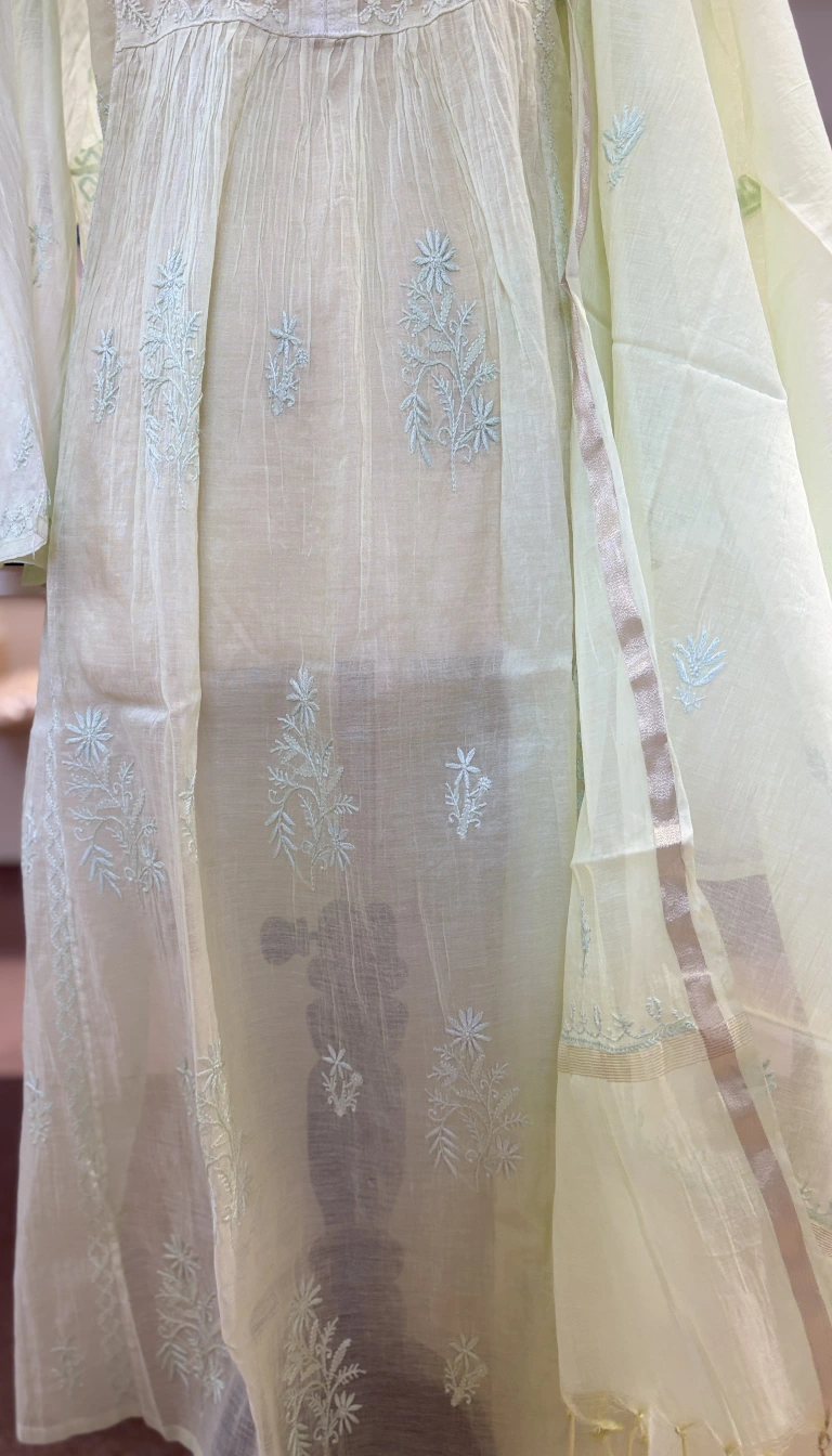 Pastel Mul Chanderi Handcrafted Chikankari Suit Set with Dupatta