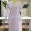 A perfect harmony of pastel elegance and intricate craftsmanship, this mint green Chikankari kurti is adorned with delicate coral threadwork in structured panel patterns and graceful florals—designed for effortless sophistication.