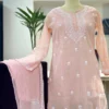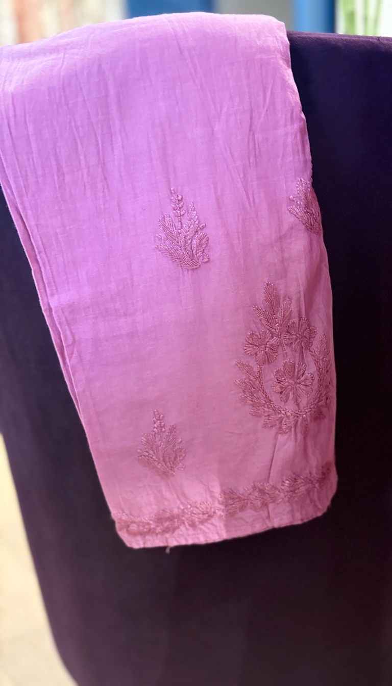 A timeless expression of grace, this dusty rose Chikankari ensemble is handcrafted on breathable mul cotton, featuring intricate floral embroidery that flows seamlessly from yoke to hem. Perfectly balanced between richness and comfort, it’s an effortless choice for refined everyday luxury.