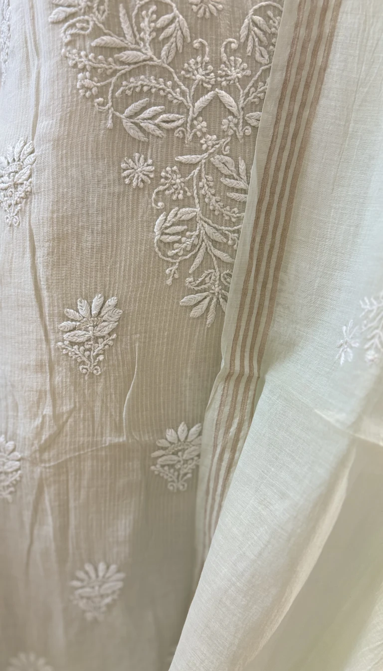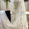 A soothing mint-ivory cotton doriya unstitched set, beautifully adorned with intricate Chikankari embroidery. Featuring delicate floral butis, a finely detailed neckline, and a lightweight dupatta with subtle borders, this ensemble is a perfect blend of understated elegance and breathable luxury—ideal for effortless daytime sophistication.