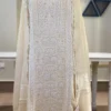 A timeless canvas of craftsmanship, this ivory mul chanderi ensemble features intricate jaali-inspired chikankari and delicate floral jaal. Designed in a pristine dyeable base, it offers the freedom to personalise while retaining its heritage elegance.
