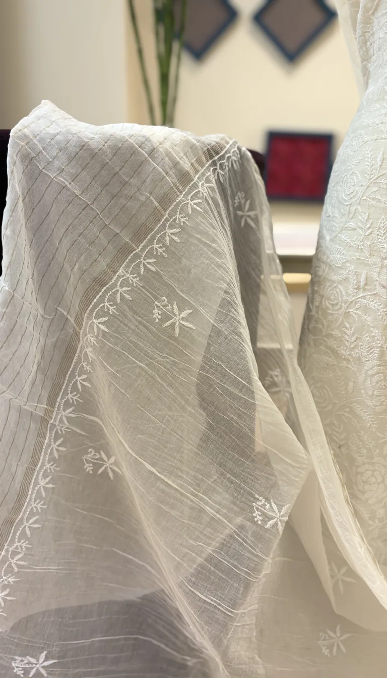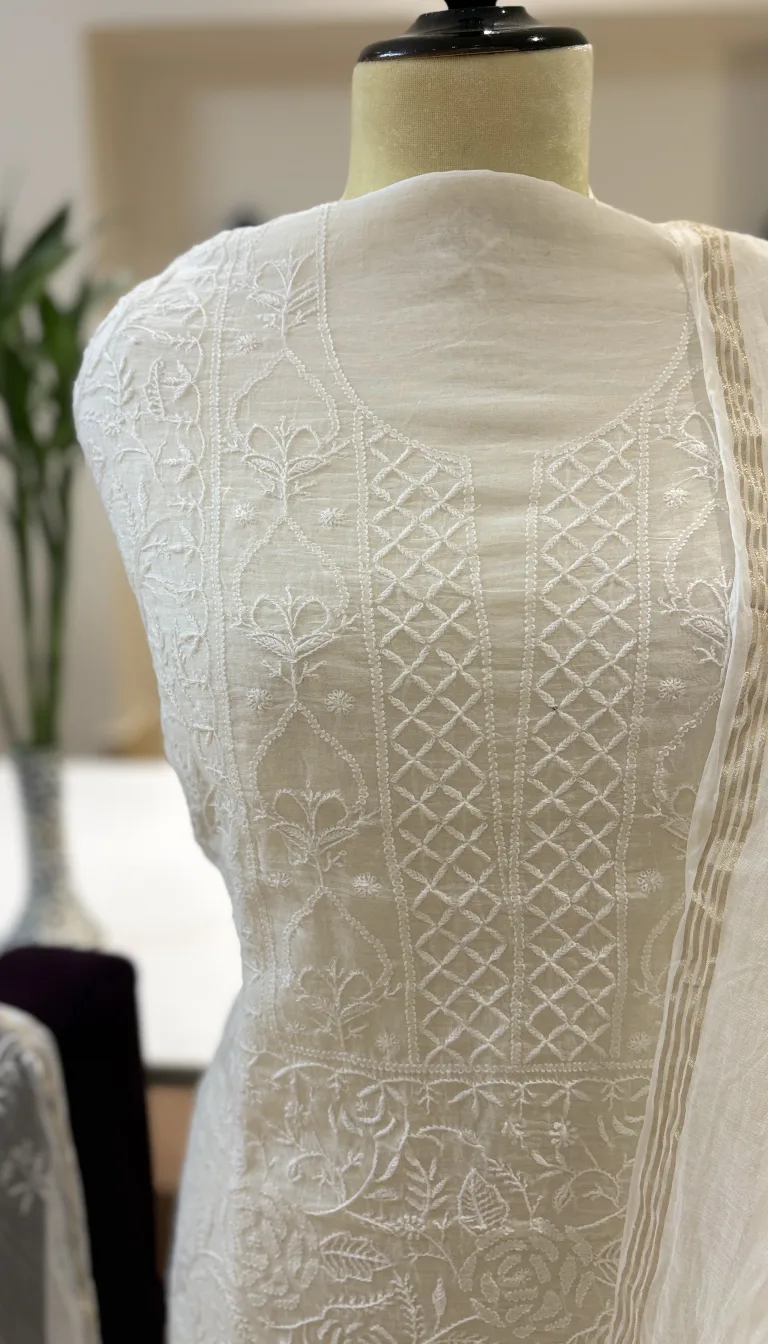 Ivory Jaali Bloom Chikankari Mul Chanderi Set