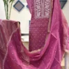 Lavender Doriya Chikankari Kurta Set with Pink Embroidery